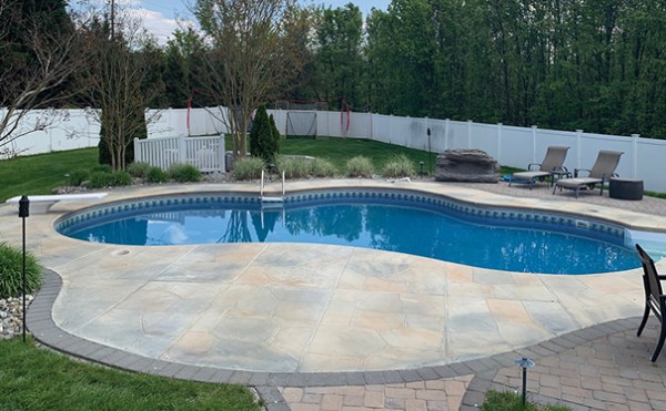 One of the most important aspects of the product used by New Castle Artisan is that it's naturally textured to be slip resistant, making it an ideal choice for pool decks.