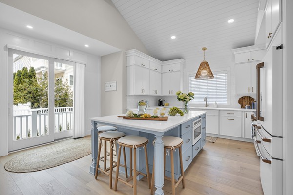 When these homeowners turned to Amiano & Son to remodel their entire home it was the perfect job for the company's lead designer Sophia Amiano. While still keeping the home's original bones intact, Amiano was able to reimagine each space by including several key features. Some of these updates included larger windows for better ocean views and shiplap on the ceiling blended with raw wood beams to add luxury while maintaining a coastal vibe. To further add unique character to the home, she also added focal points throughout like a wood tiled arch in the bathroom.