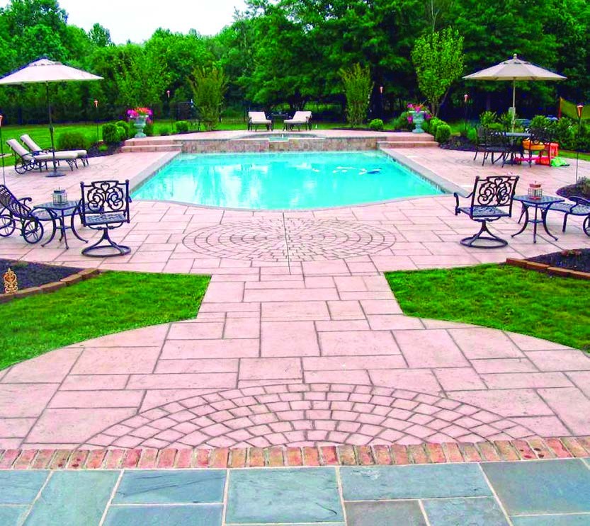Decorative concrete can mimic the color and texture of flagstone, brick, Belgian block or wood decking. It’s the best to use around a pool because it is slip-resistant. There are also some cool new colors coming into the residential market, like blues. Blue has always been a problem for concrete because the one source—cobalt—was expensive. Now it’s becoming more affordable and these new blue colors are being used.