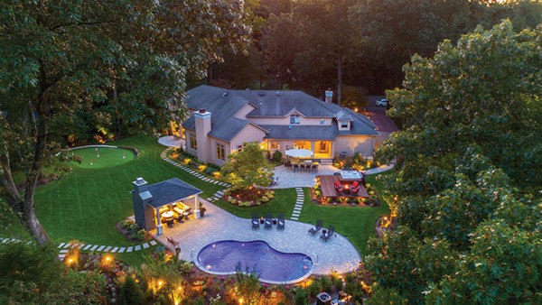 This ambitious project creates an outdoor living space for the homeowner to spend all their free time in. The escape features a swimming pool, spa, multiple fire features, putting green and chipping mat, pavilion and an outdoor kitchen.
