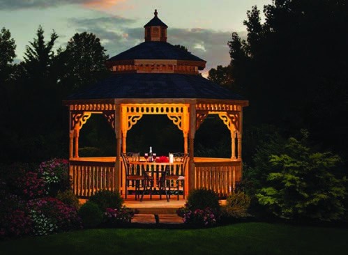 Wish you could enjoy the cool summer nights outside without the bugs? Consider our beautiful wood or vinyl screened-in gazebos.