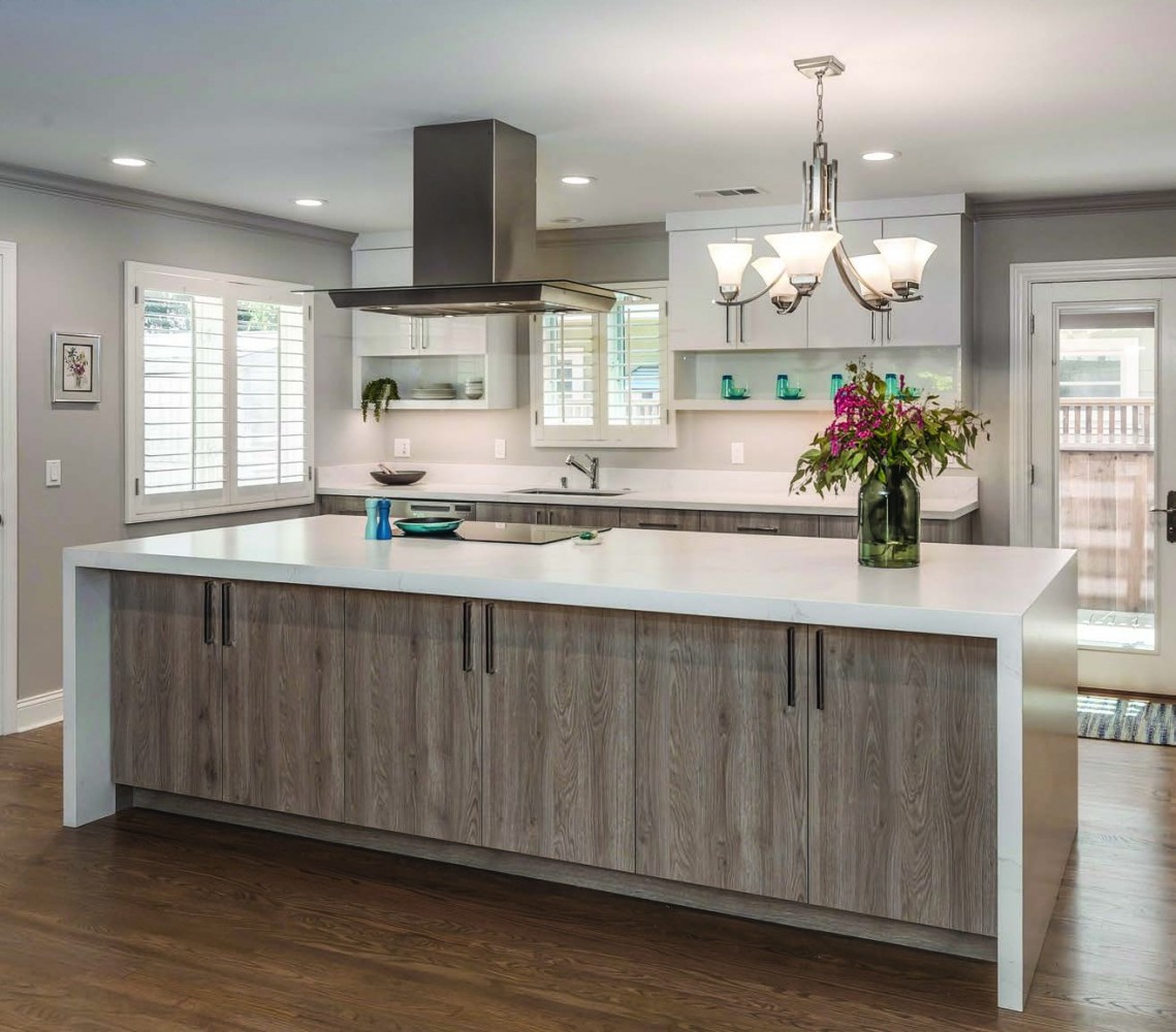 Scott Fenton, regional showroom manager at Denney Electric Supply, agrees, adding that brass is also making a comeback but this time it’s a little less glossy.