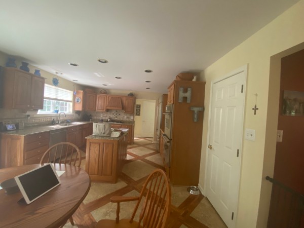 Amiano & Son took this Shamong, N.J. client's home from dark and dated to bright and warm, with natural wood floors and crisp white contrasts. By opening up the kitchen and dining room, it created a more practical layout that's perfect for entertaining.