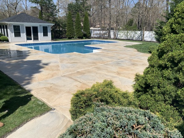 “Finally, the application and the way it’s colored and designed allows for future reparability. So if you have to get your skimmer replaced or your ladder steps replaced and they have to take out a piece of the concrete, this is something I can match up should that need arise. As I explain to people, it’s a repair process that can always be spot repaired.”